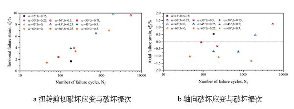 图4 破坏振次与试样破坏时的应变